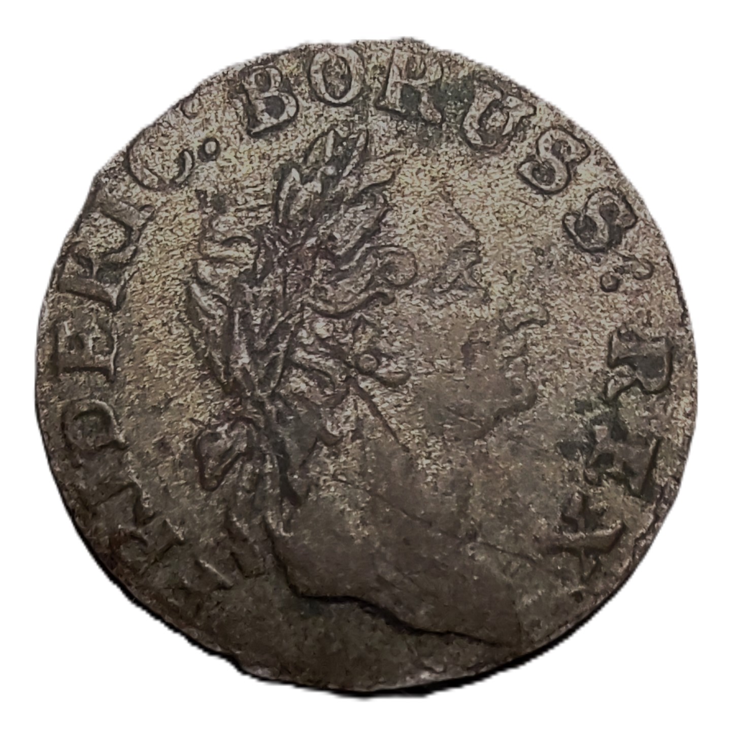 Ця монета — справжня перлина! З одного боку — витончений профіль, оточений лавровим вінком, символом перемоги й влади, а напис «C. BORUSSIUS» недвозначно натякає на прусське походження (можливо, епоха Фрідріха Великого).