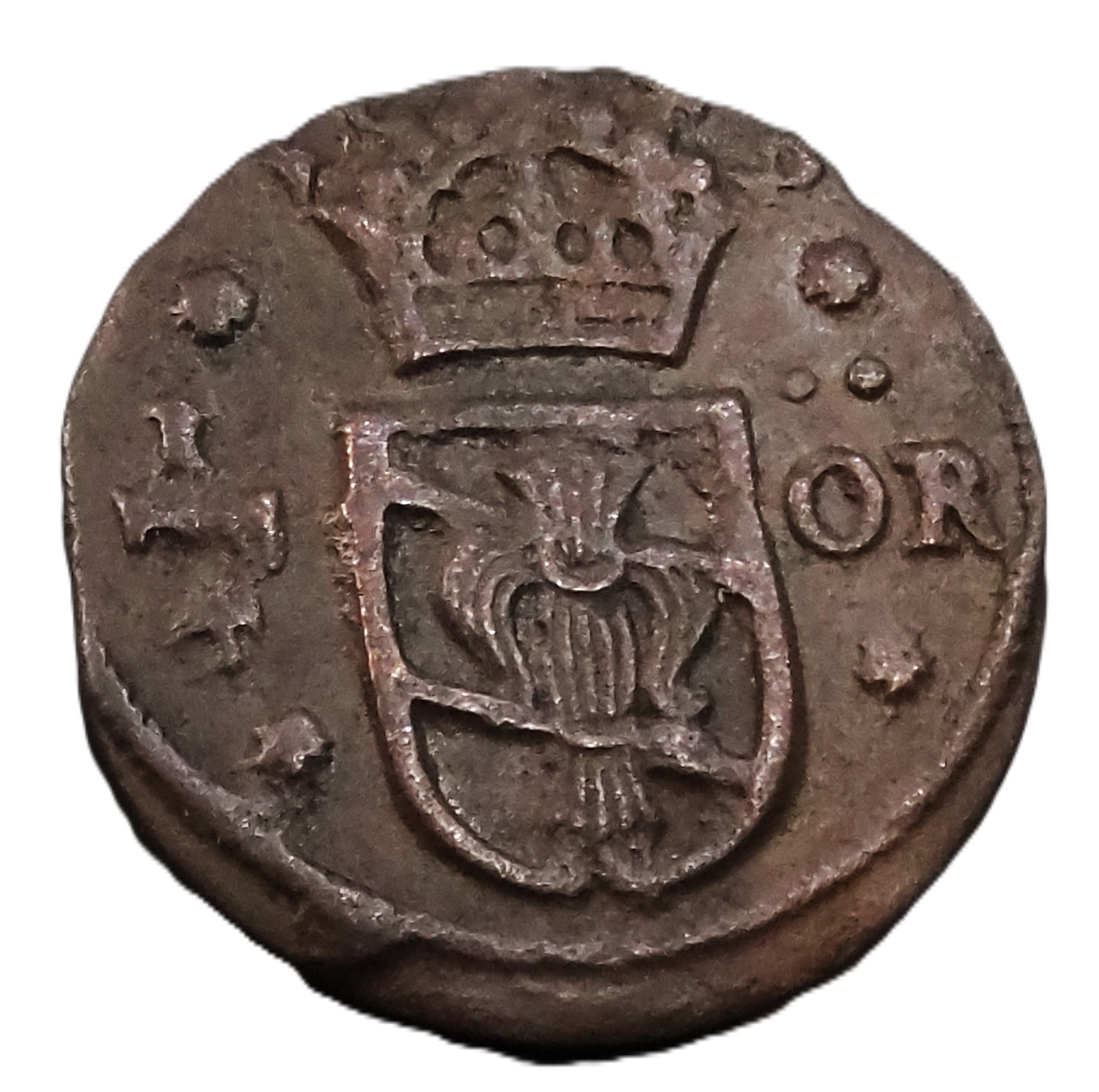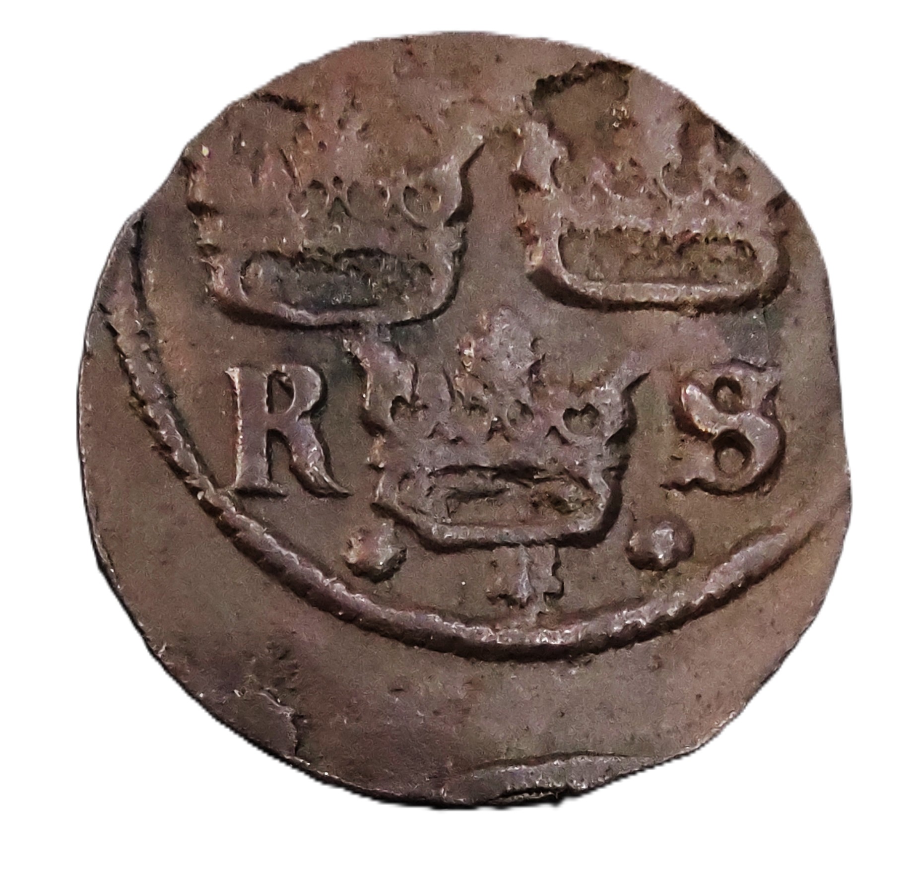 Шведська монета ¼ öre 1642 року, викарбувана за правління королеви Крістіни Вази. Ці монети були випущені, коли Швеція була європейською потугою.
